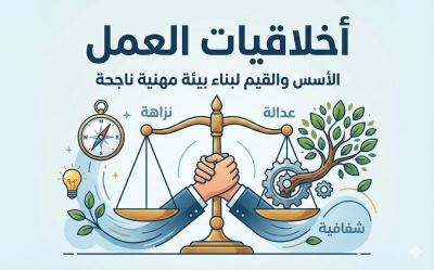 هي مجموعة من القيم والمبادئ والمعايير التي تحكم سلوك الأفراد والمؤسسات في بيئة العمل، وتهدف إلى ضمان التصرف بنزاهة وشفافية ومسؤولية تجاه العملاء والموظفين والمجتمع.