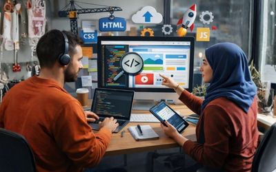 مقدمة في تطوير المواقع هي وحدة تدريبية تمهيدية تهدف إلى تعريف المتدرب بمفهوم تطوير الويب ومكوّناته الأساسية، وكيفية عمل مواقع الويب من حيث البنية (Front‑End) والتفاعل (JavaScript) ومبادئ التواصل مع الخادم (Back‑End) بصورة مبسطة. تركز الوحدة على بناء صفحات ويب بسيطة ومنظمة باستخدام HTML وCSS، وإضافة سلوك تفاعلي باستخدام JavaScript، مع التعرف على أدوات المطور الأساسية مثل المتصفح وأدوات الفحص (DevTools)، وإدارة الملفات، ومبادئ النشر على الإنترنت. كما تتطرق إلى مبادئ مهمة مثل التصميم المتجاوب، إمكانية الوصول، وأفضل الممارسات لكتابة كود واضح وقابل للصيانة.